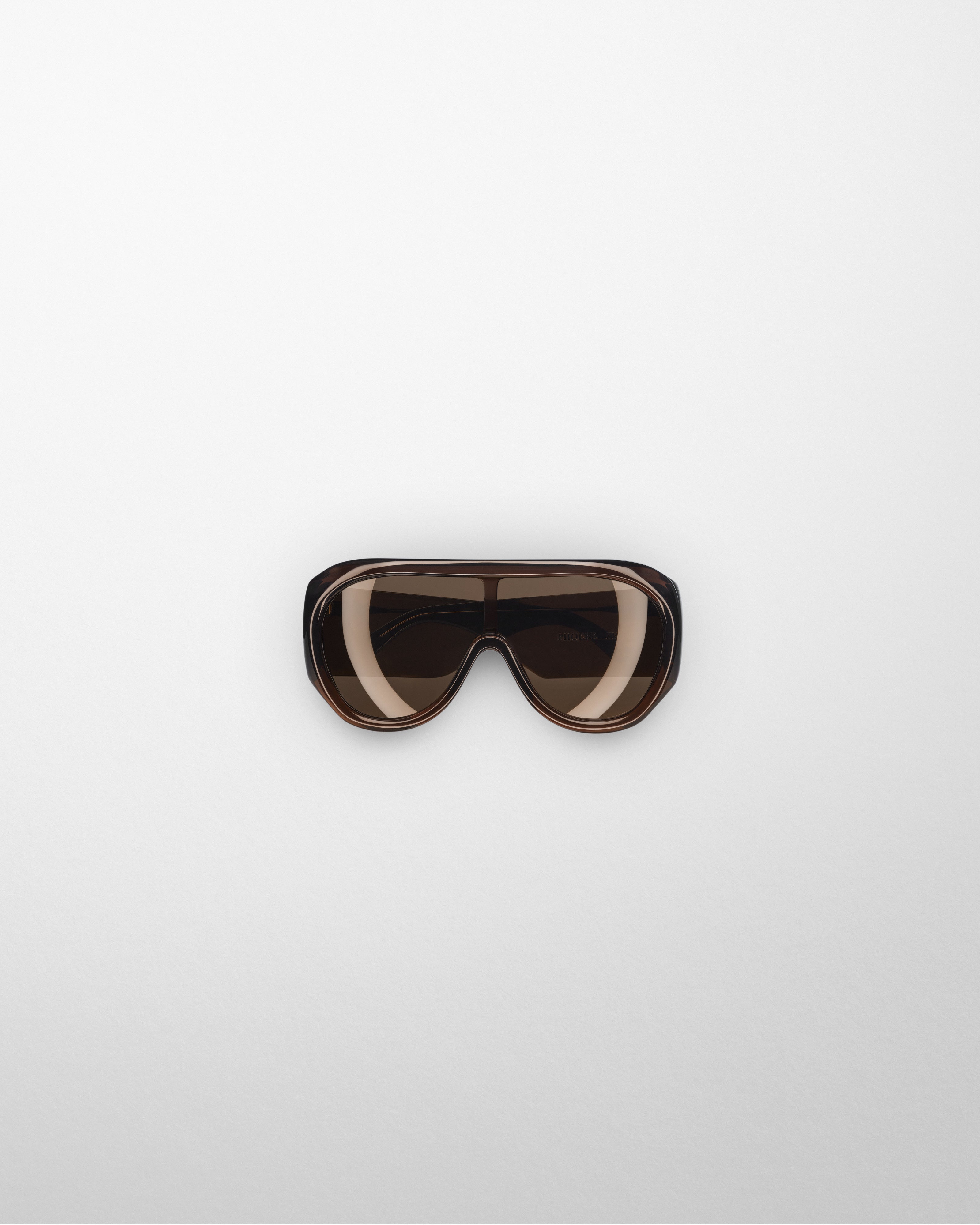 Bombé sunglasses with brown acetate frames, extra-wide, angular temples and dark brown lenses.