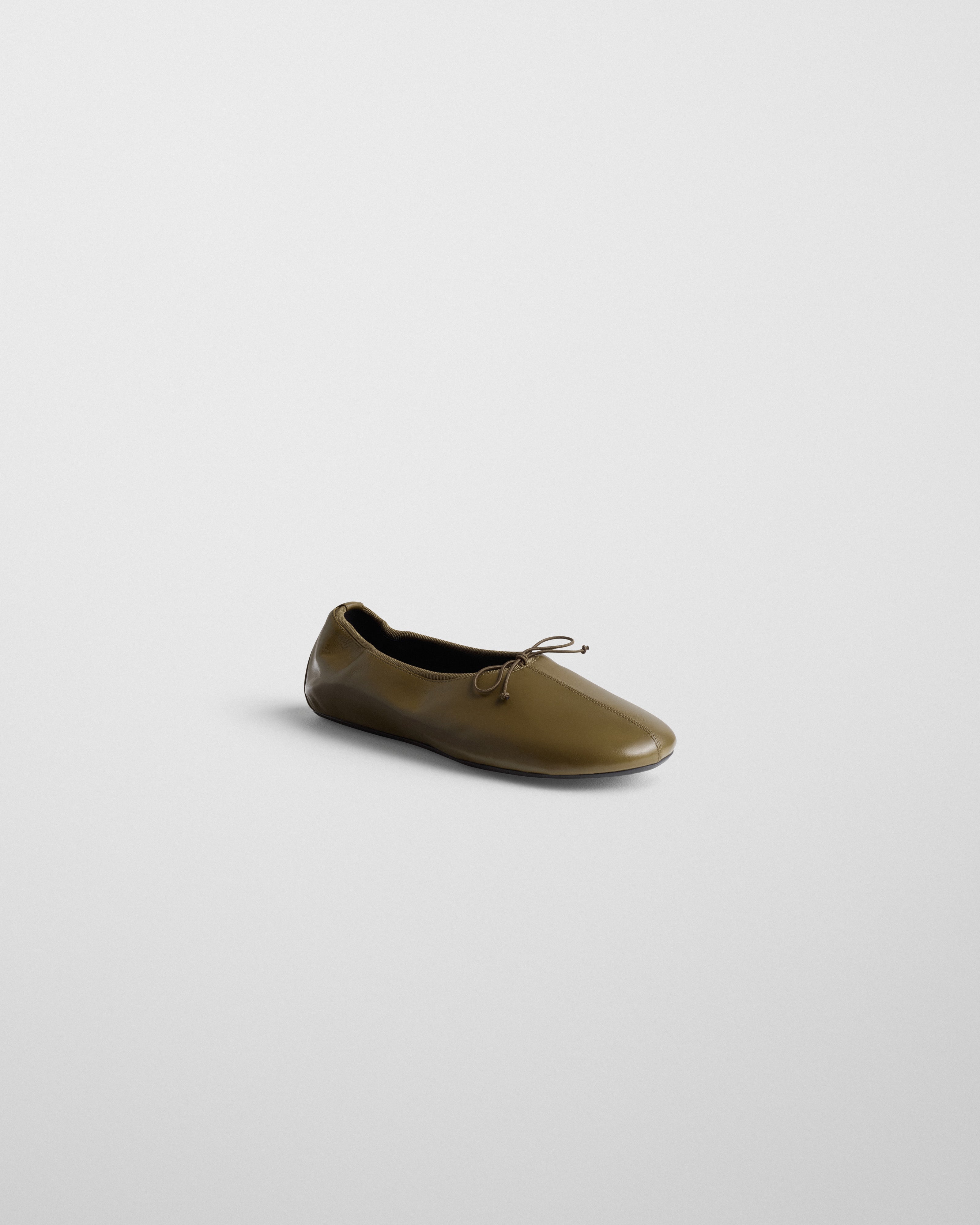GATHERED FLATin army green leather