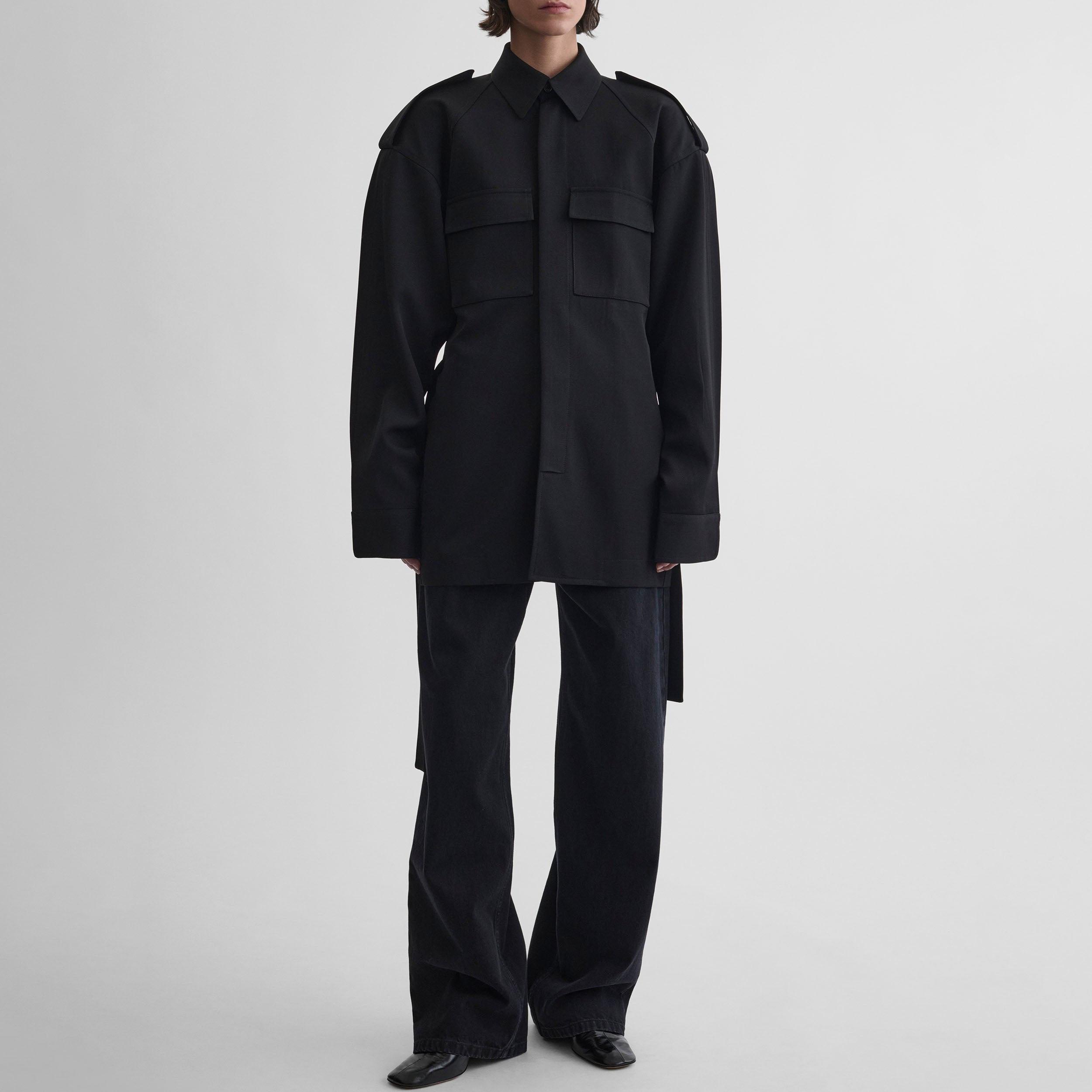 LIGHTWEIGHT SHIRT JACKETin black wool