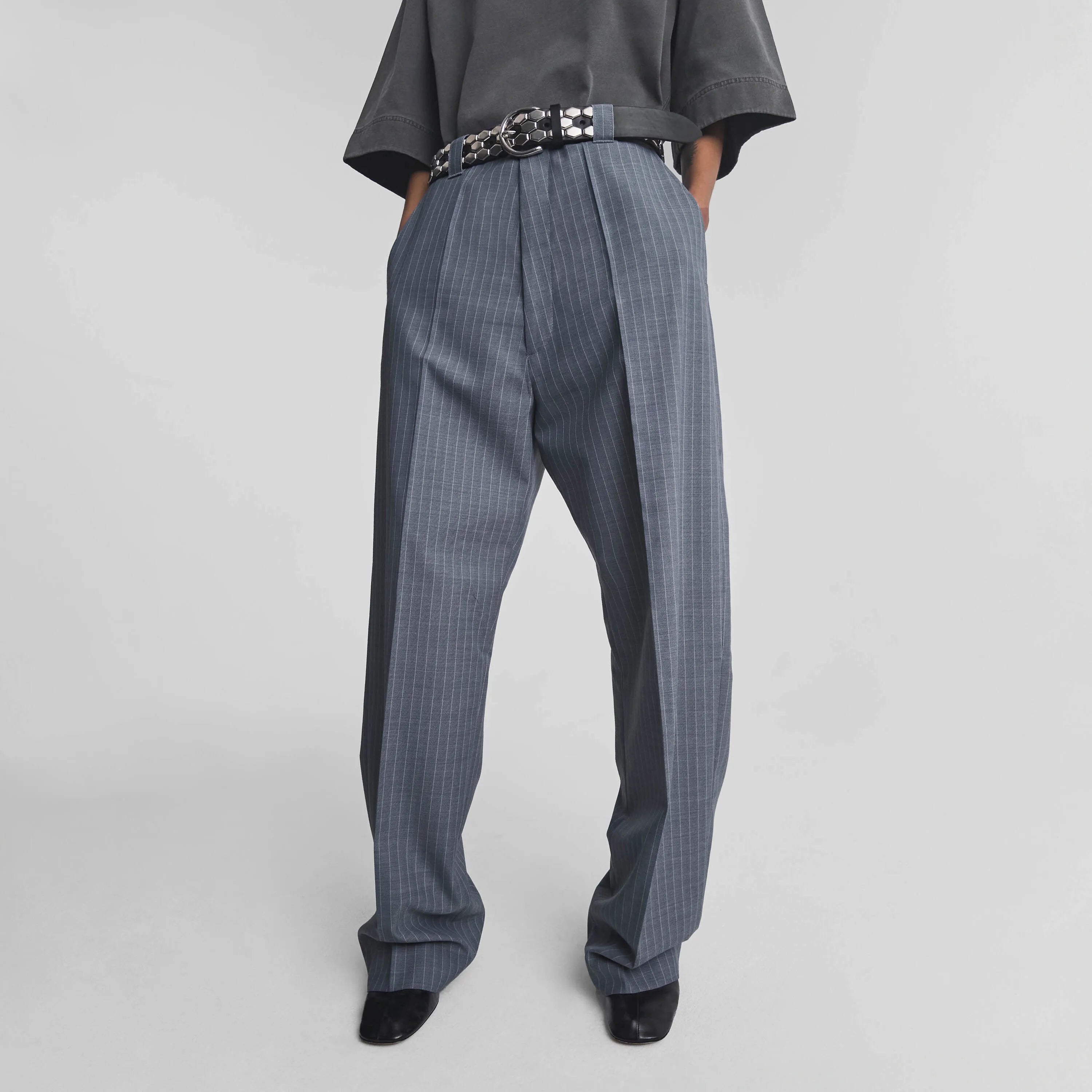 OVERSIZED TROUSERSin steel grey pinstripe wool