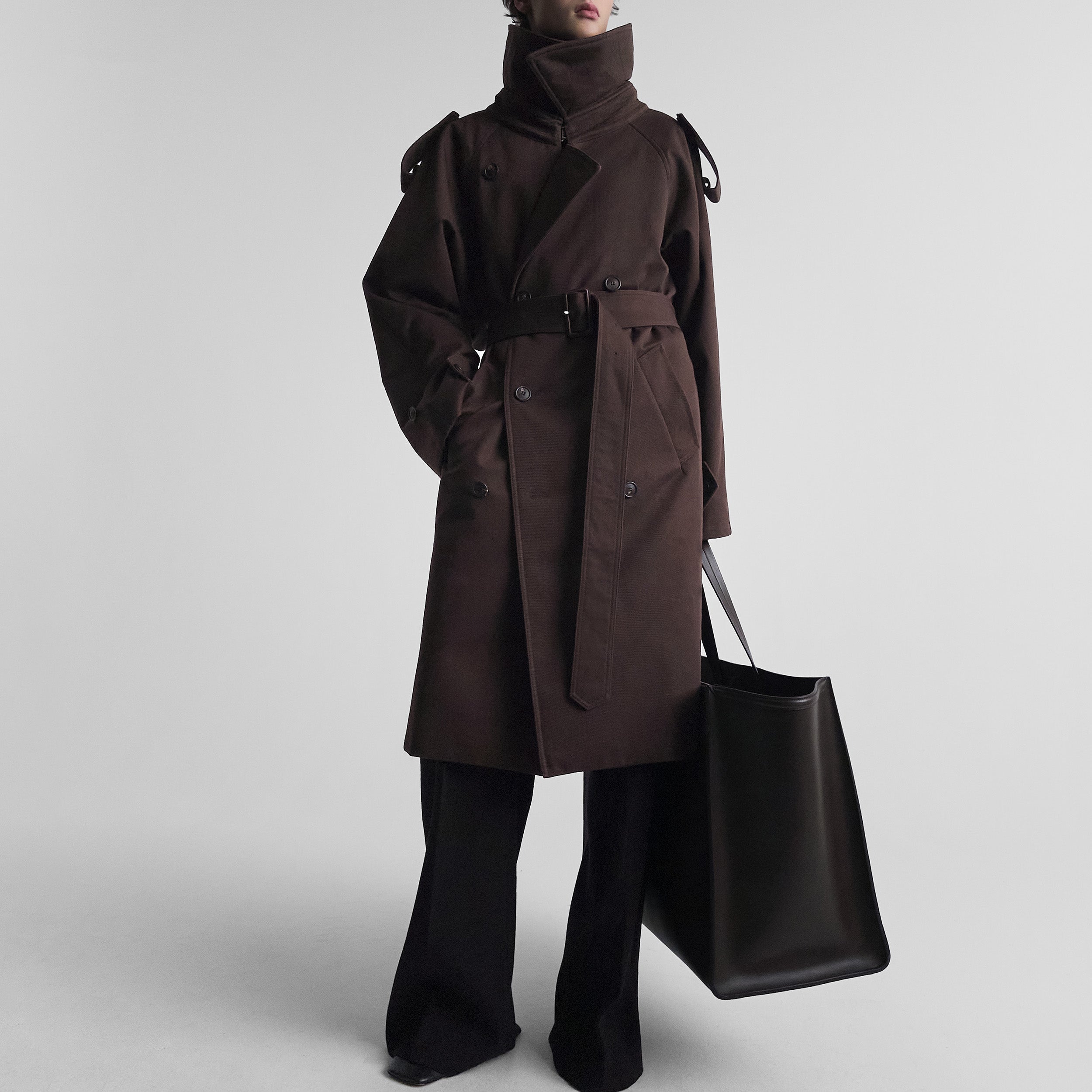 PADDED TRENCH COATin chocolate brown cotton drill