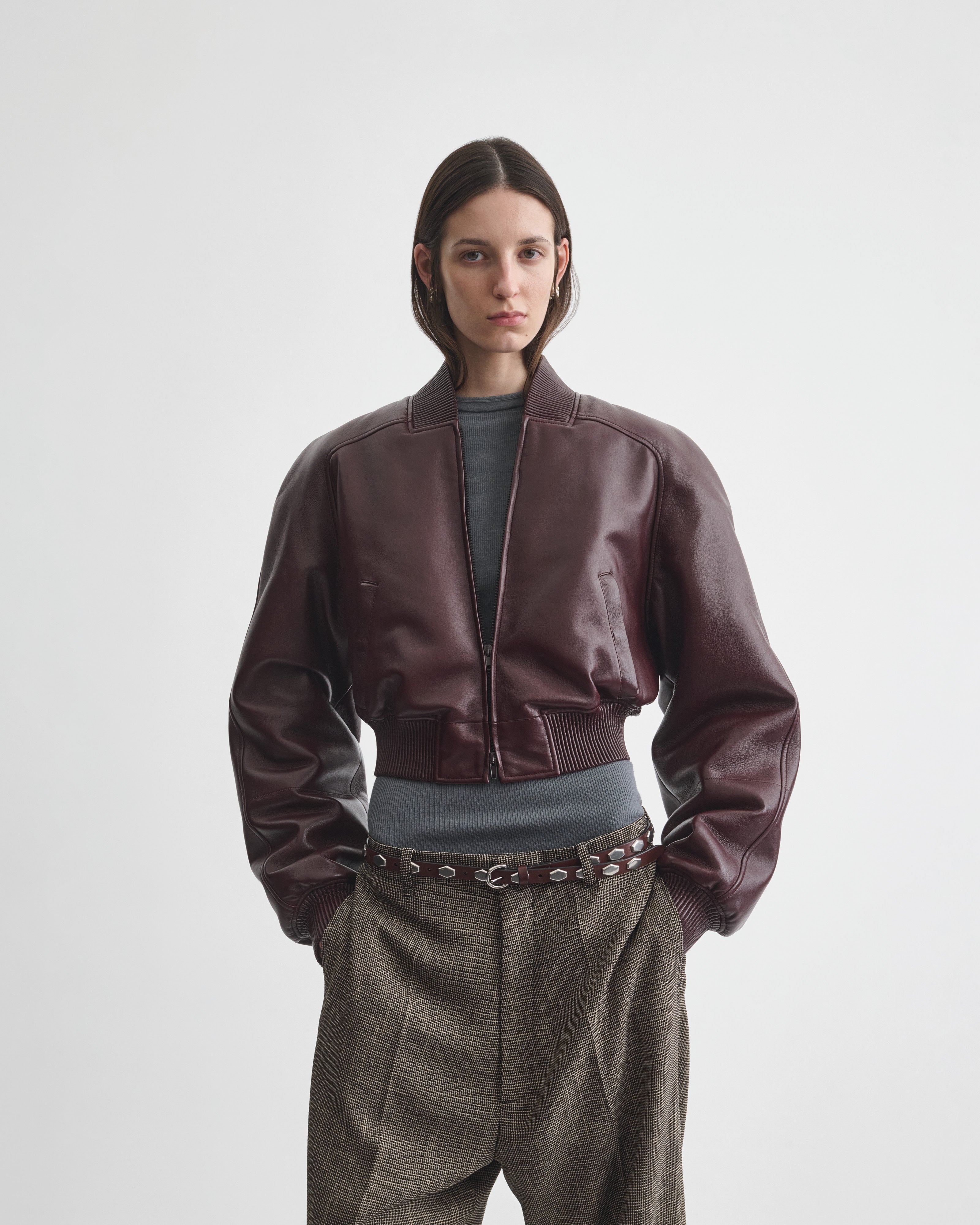 SHRUNK BOMBERin merlot leather